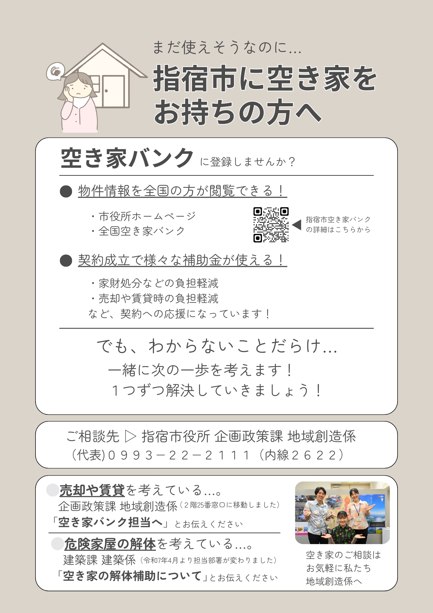 また、併せて空き家活用に関する無料相談会も実施します。