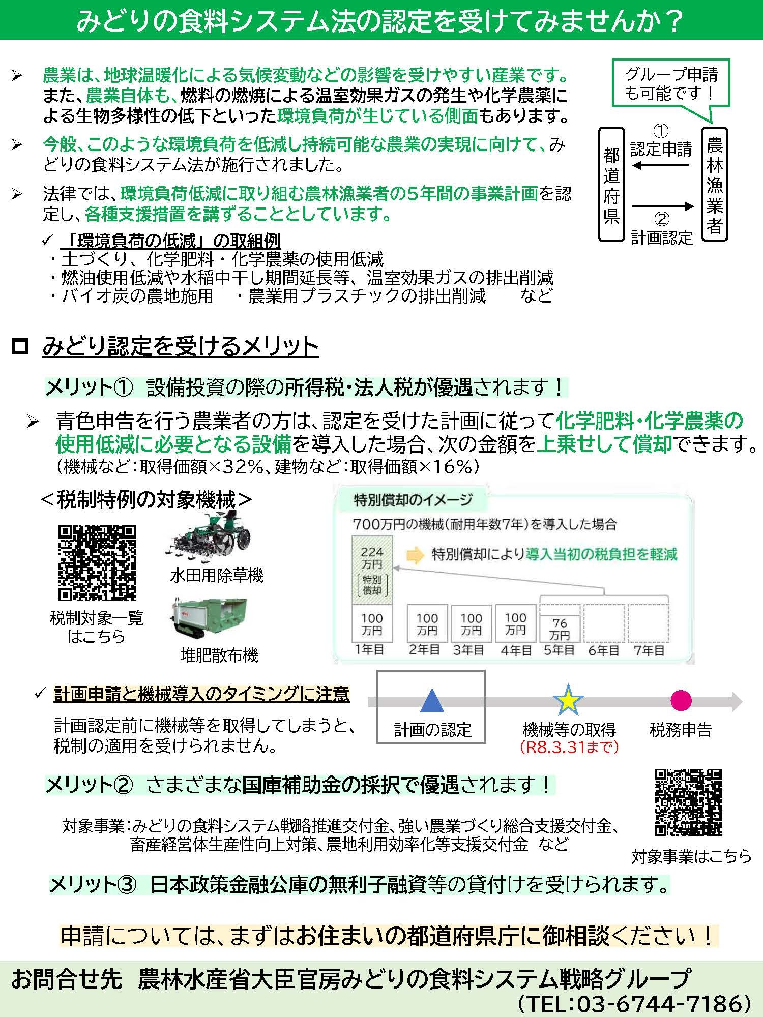環境と調和のとれた食料システムの確立のための環境負荷低減事業活動の促進等に関する法律(みどりの食料システム法)に基づき、環境にやさしい農業(環境負荷低減事業活動)に取り組む生産者を支援・促進する認定制度です。