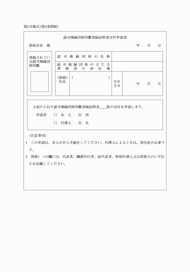 (2) 認可地縁団体印鑑登録証明書交付申請書 第2号様式