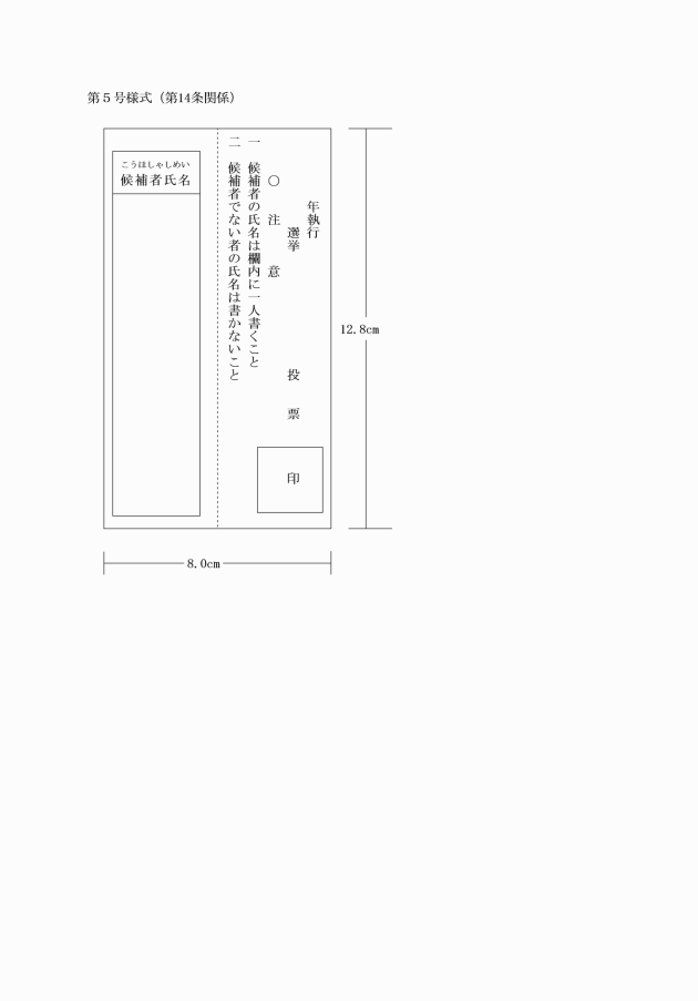 第14条 法第45条第2項の規定により市の委員会が管理する選挙の投票用紙は,第5号様式によるものとする。