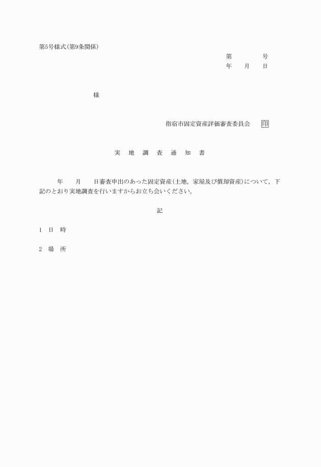 第5号様式 実地調査通知書