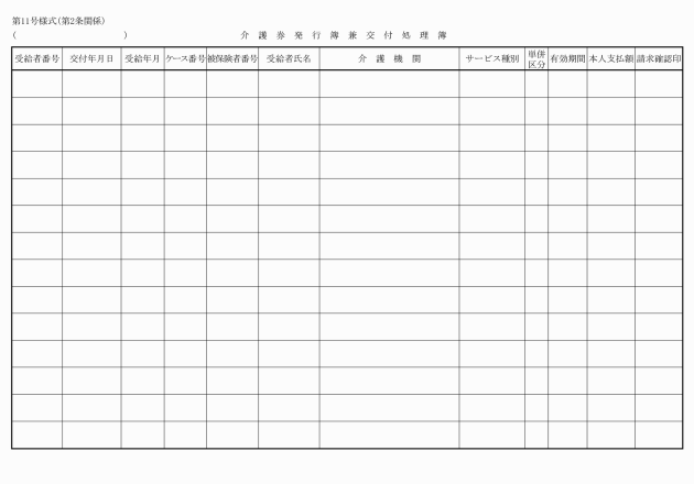 (6) 介護券発行簿兼交付処理簿 (第11号様式)