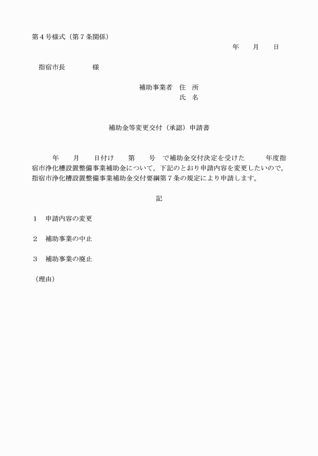 (1) 当該変更により補助金の交付決定額に変更を生じる場合 補助金等変更交付決定通知書(第5号様式)