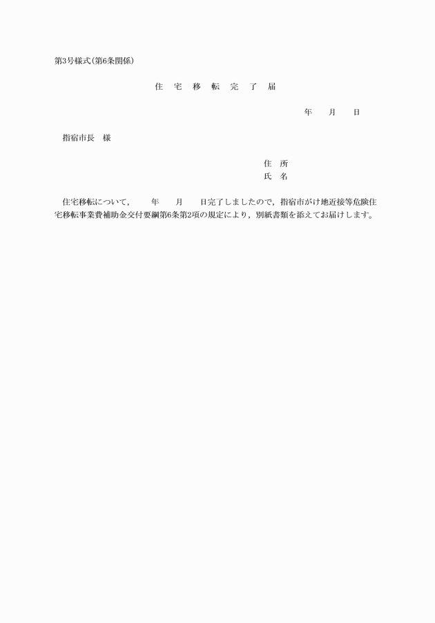 2 補助対象者が住宅移転を完了したときは,住宅移転完了届(第3号様式)に次に掲げる書類を添えて市長に提出しなければならない。