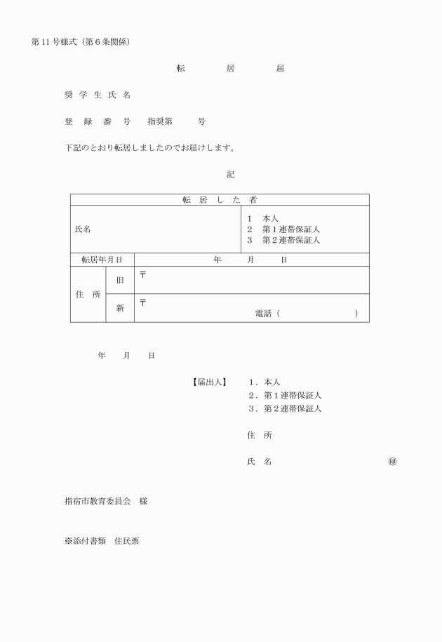 第2条 奨学資金の貸与を希望する者は,次の書類を添えて指宿市教育委員会(以下「教育委員会」という。)に提出しなければならない。