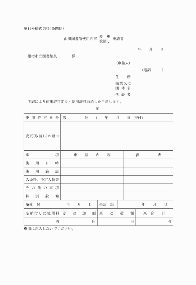 2 変更・取消申請書を受理したときは,前条の規定に準じて処理し,許可書に当該事項を記載して交付する。ただし,取消しについては許可書は交付しない。
