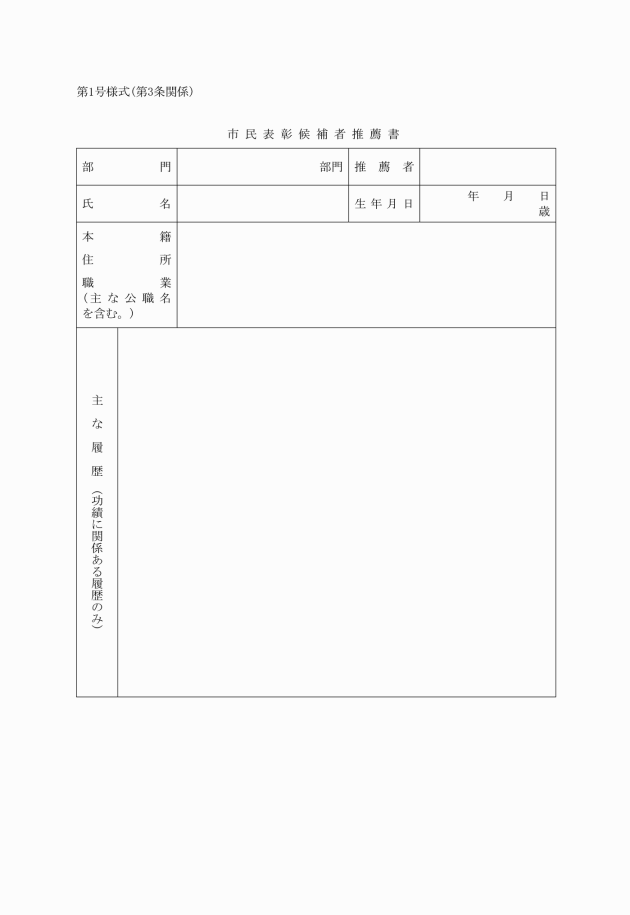 (1) 市民表彰候補者推薦書(第1号様式)