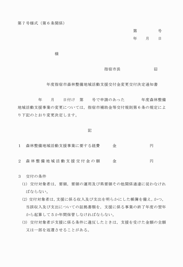 指宿市森林整備地域活動支援交付金交付要綱(平成20年指宿市告示第102号)の全部を改正する。