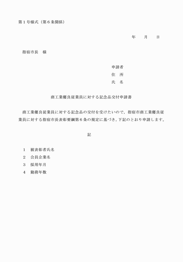 第8条 記念品の交付は,審査会の意見を聴いて市長が決定し,商工業優良従業員に対する記念品交付決定通知書(第2号様式)により団体へ通知するものとする。