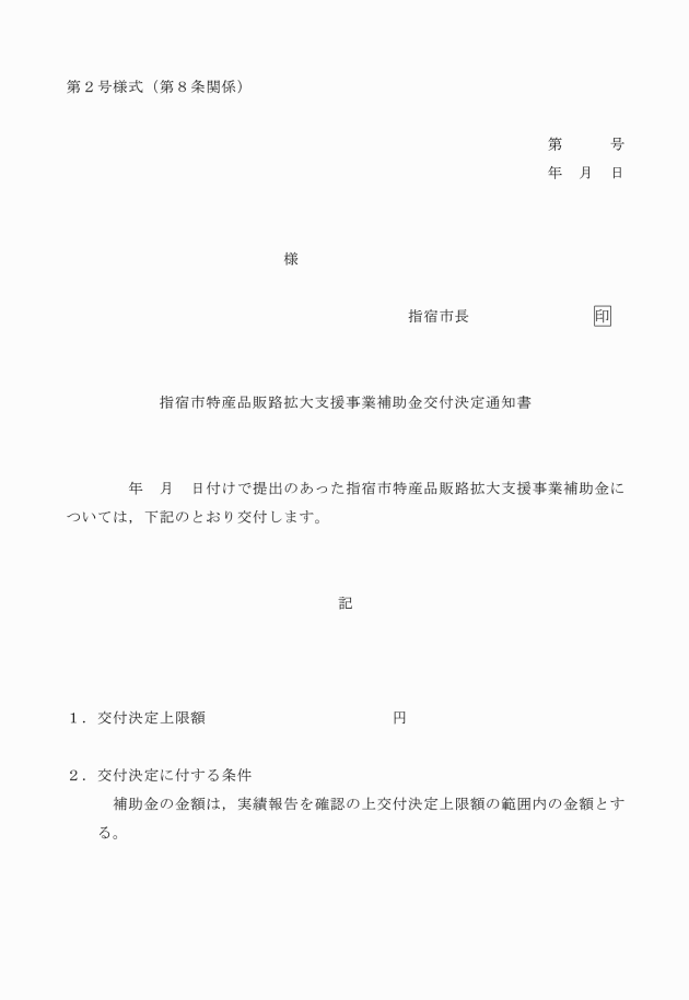 第11条 補助金の交付を受けようとする者は,確定通知書を受理したときは,指宿市特産品販路拡大支援事業交付請求書(第5号様式)を市長に提出するものとする。