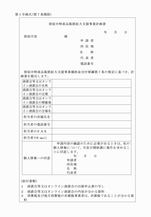 (1) 指宿市特産品販路拡大支援事業計画書(第1号様式)