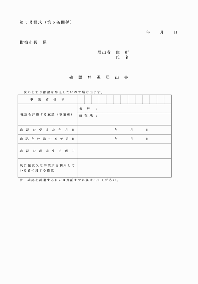 第5条 法第36条及び第48条の規定による確認の辞退は,確認辞退届出書(第5号様式)により行うものとする。