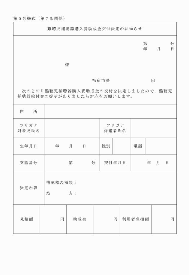 3 市長は,助成金交付を却下することを決定した場合は,難聴児補聴器購入費助成金交付申請却下通知書(第6号様式)により申請者に通知するものとする。
