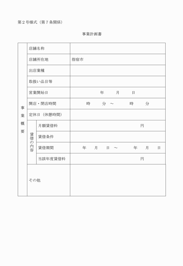 第7条 補助金の交付を受けようとする者(以下「申請者」という。)は,事業開始後に指宿市空き店舗等活用促進事業補助金交付申請書(第1号様式)に,次に掲げる書類を添えて,市長に提出しなければならない。