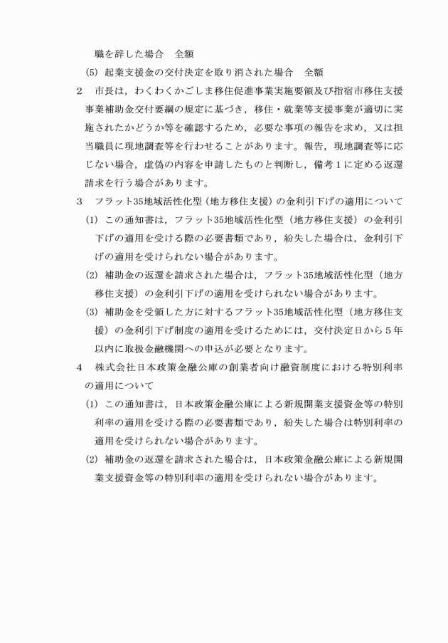 (1) 提出した書類に偽りその他不正がある場合又は本市での居住若しくは就業の実態がないことが明らかになった場合 全額