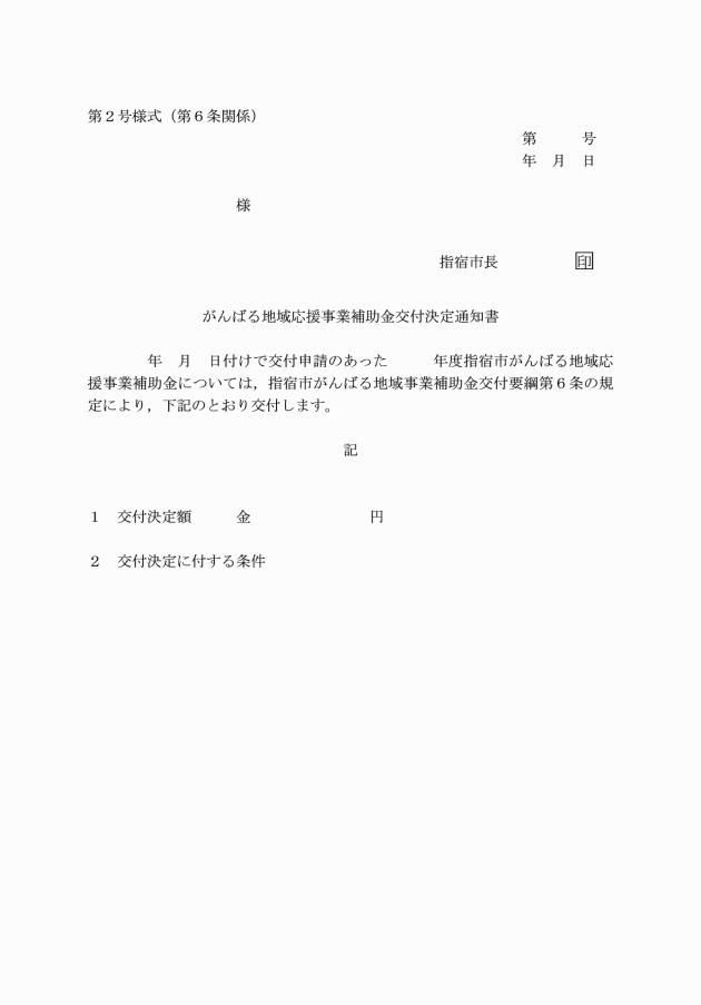 第2条 補助金の交付の対象となる事業(以下「補助対象事業」という。)は,一般財団法人地域活性化センターが定める地方創生に向けて“がんばる地域”応援事業実施要綱(以下「実施要綱」という。)第7条の規定による助成の決定を受けた事業とする。