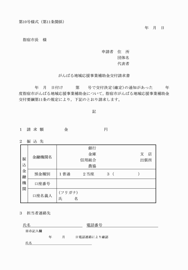 第5条 補助金の交付を受けようとする補助対象者は,がんばる地域応援事業補助金交付申請書(第1号様式)に次に掲げる書類を添えて,市長に申請しなければならない。