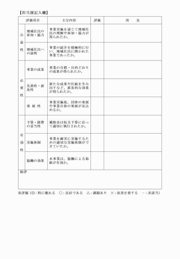第17条 補助金の交付を受けた活動団体及び市長は,補助対象事業終了後,速やかにみんなのまちづくり事業相互評価書(第13号様式)により,事業の効果,目的達成状況等について相互評価を行うものとする。